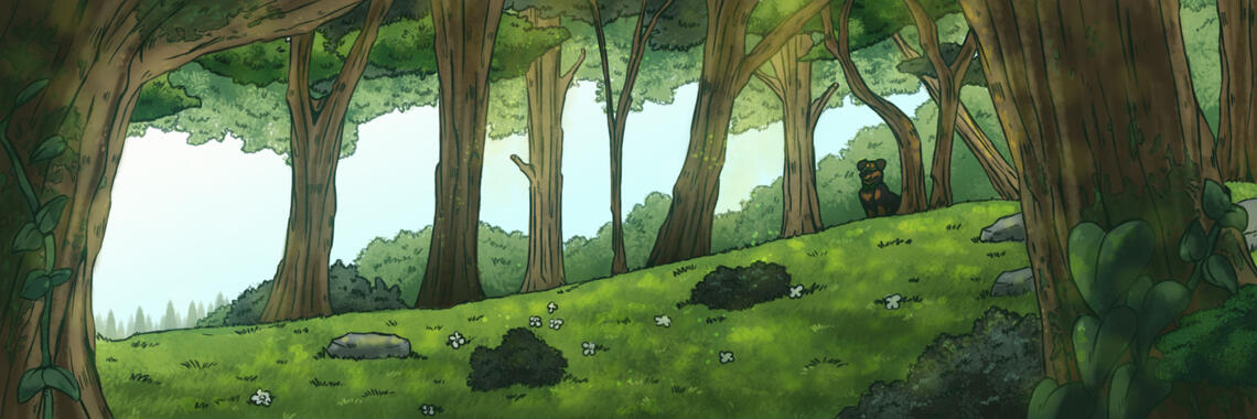 A nature loving Rottweiler. She loves taking walks throughout the grove and listening to sounds of birds chirping. She is the mother of six puppies, whom she loves very much. She is also a big fan of puns and will spend time making dumb jokes with her spouse, Cedar.